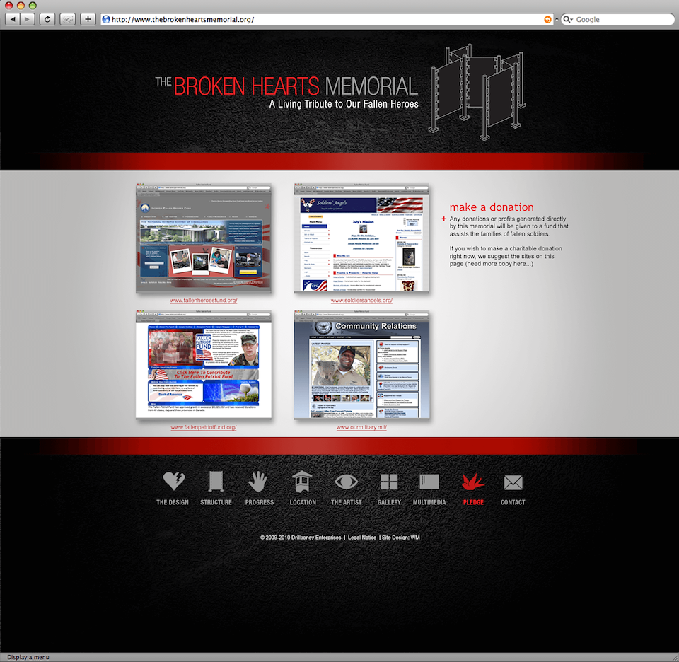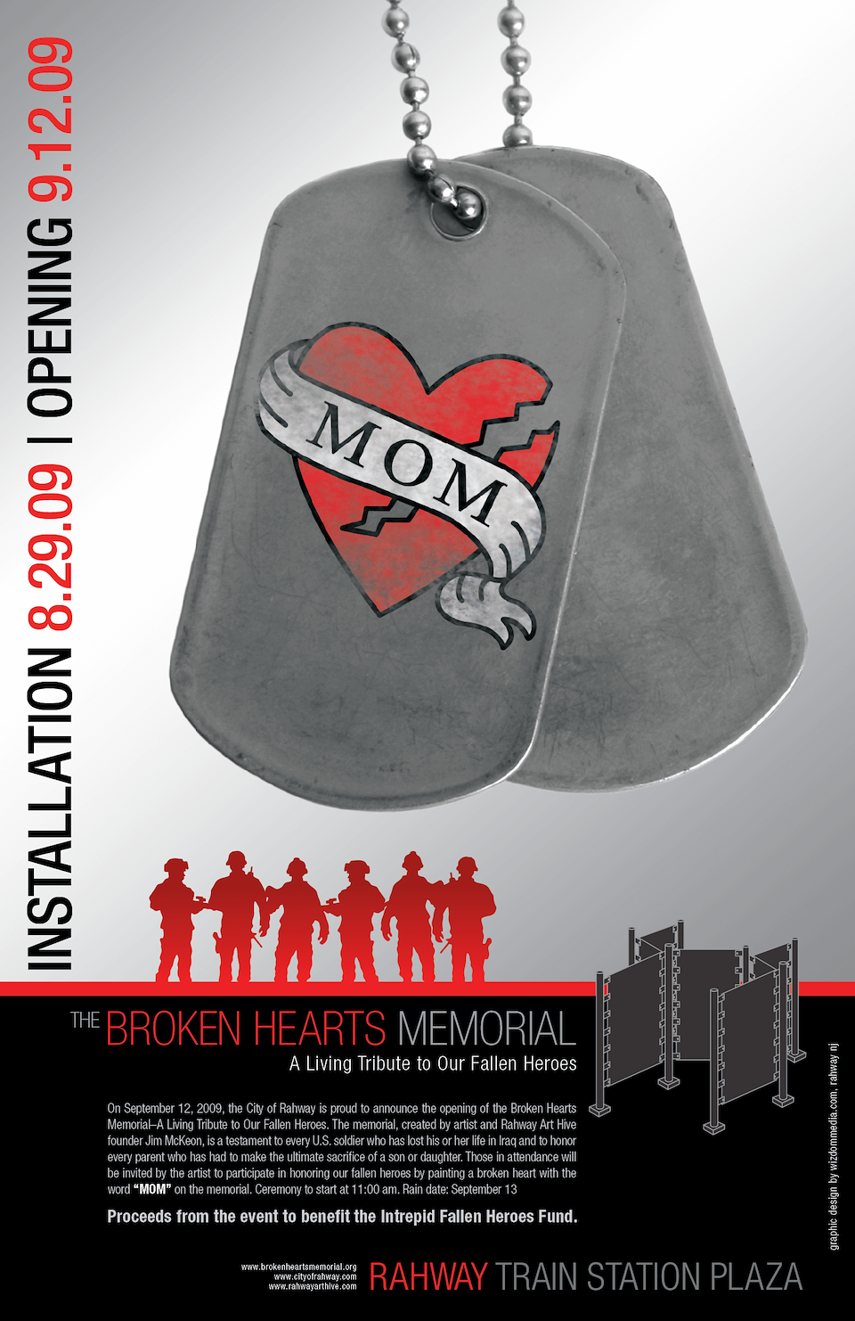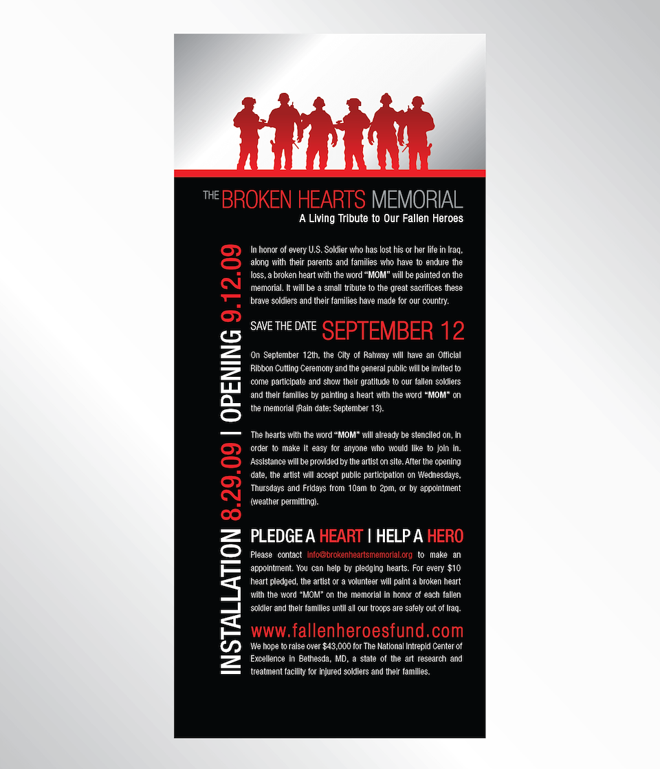 CHALLENGE: Create an identity for Broken Hearts Memorial, and the produce a wide variety of deliverables so as to initiate community involvement, and to promote the installation’s opening.