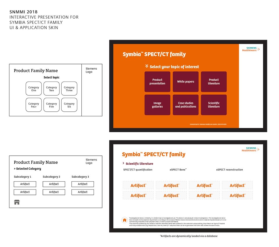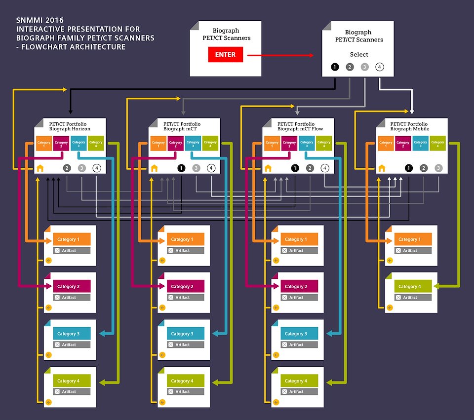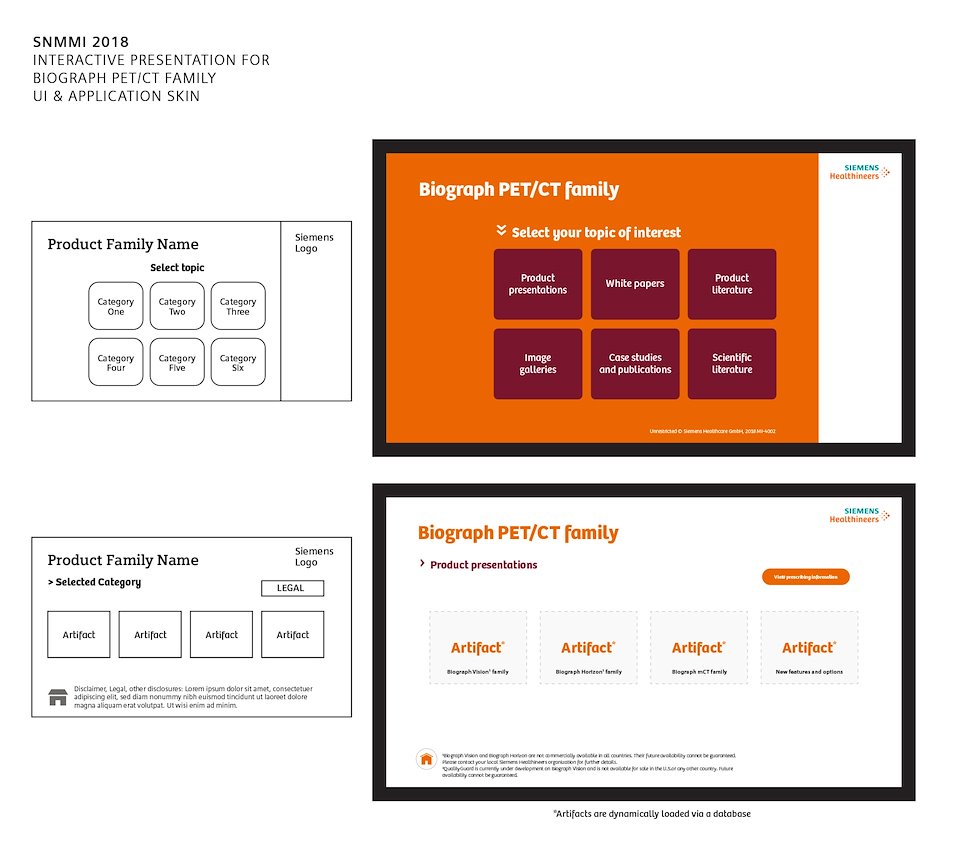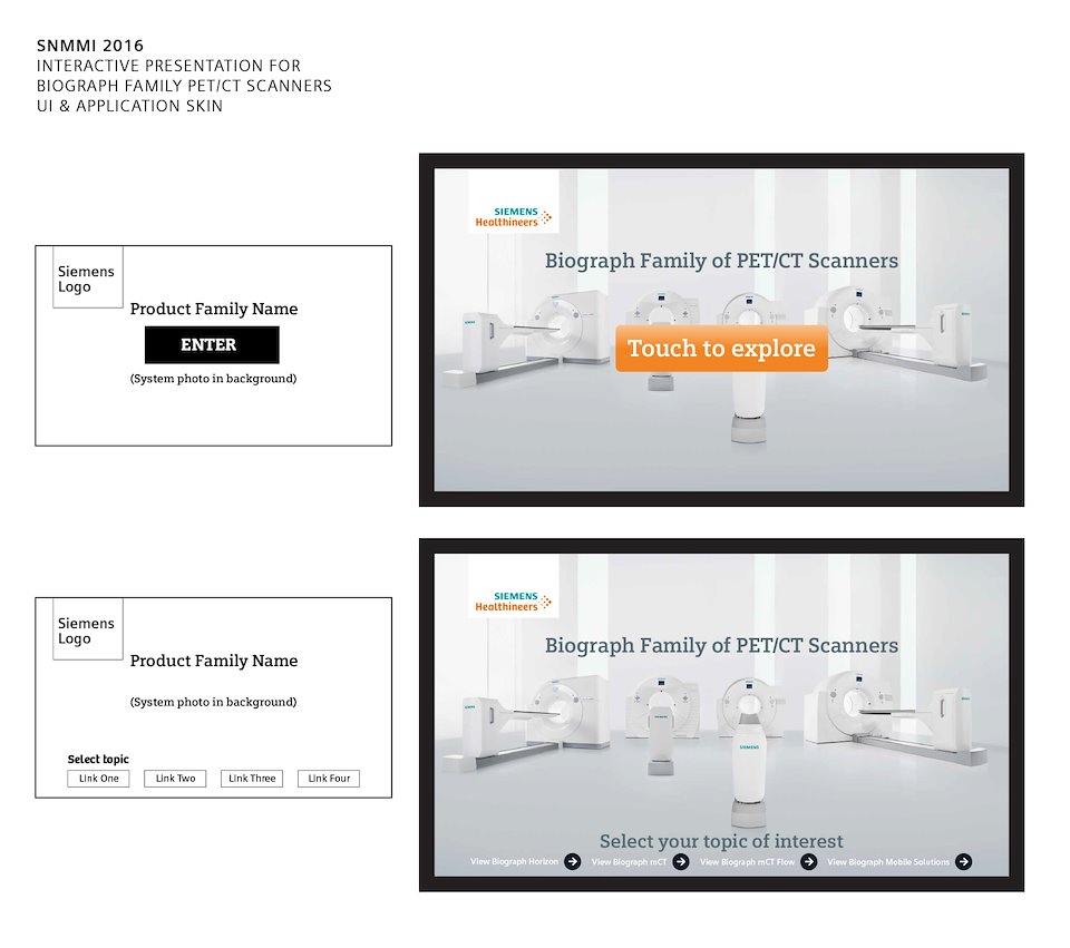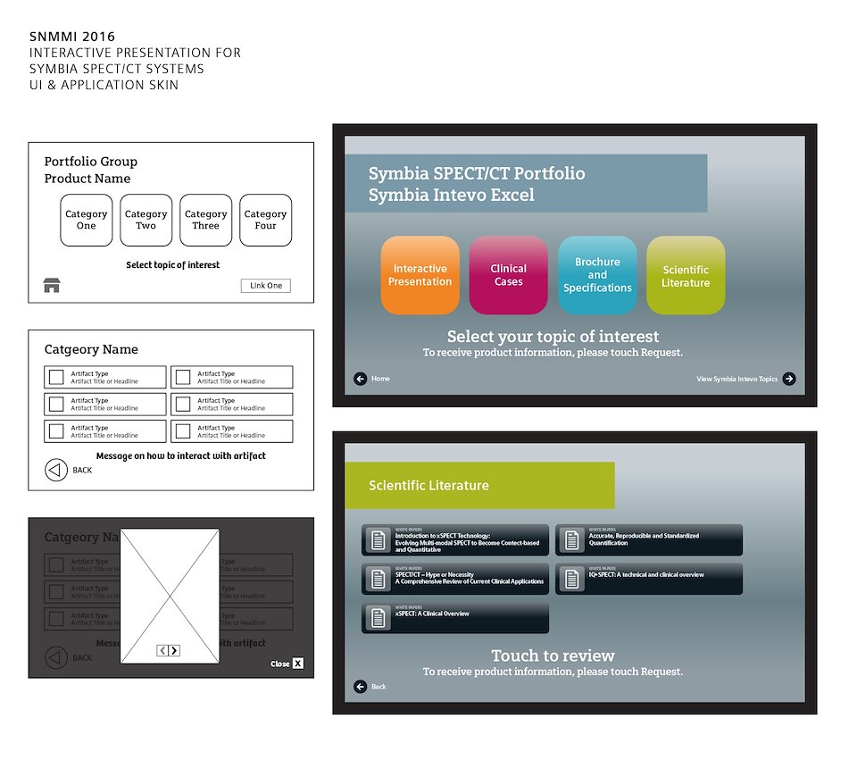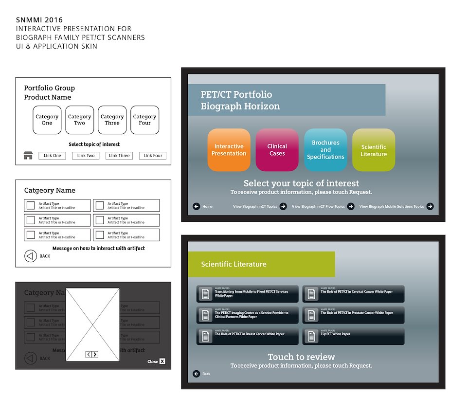 Expanding on 2015's product (see the Siemens Interactive Part 1), a series of interactive presentations for SNMMI 2016 were requested. These new presentations would merge the Scientific Literature library, the Clinical Cases PowerPoint presentations, with interactive and traditional marketing.