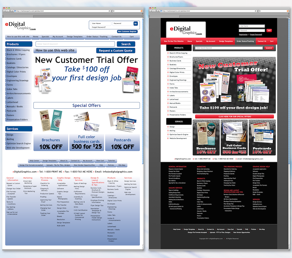 Website Redesign for eDigitalGraphics.com (Before and After)
